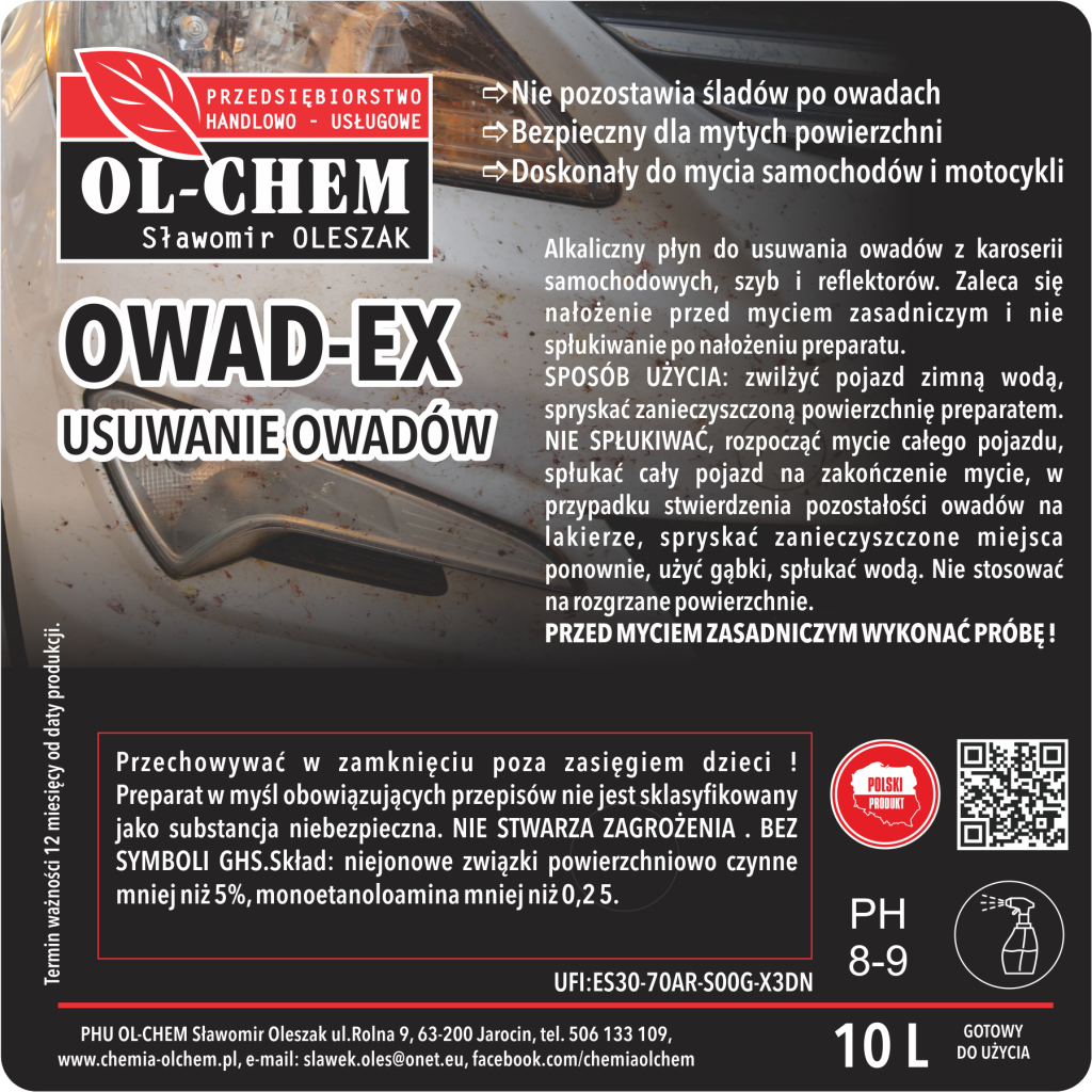 Alkaliczny płyn do usuwania owadów z karoserii samochodowych, szyb i reflektorów. Zaleca się nałożenie przed myciem zasadniczym i nie spłukiwanie po nałożeniu preparatu.