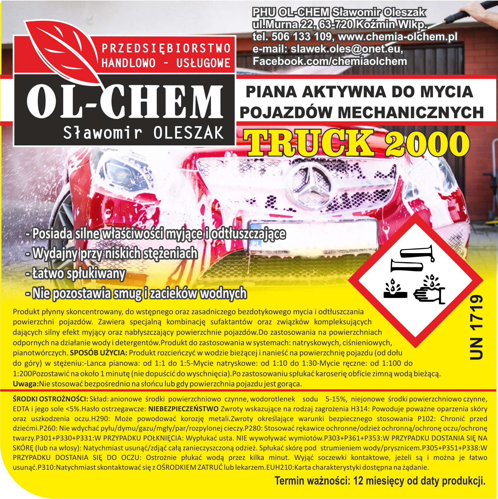 Produkt płynny pianowy silnie skoncentrowany, do wstępnego oraz zasadniczego bezdotykowego czyszczenia, mycia i odtłuszczania pojazdów mechanicznych, samolotów, helikopterów, czołgów i okrętów oraz innych powierzchni mocno zabrudzonych i zatłuszczonych. |