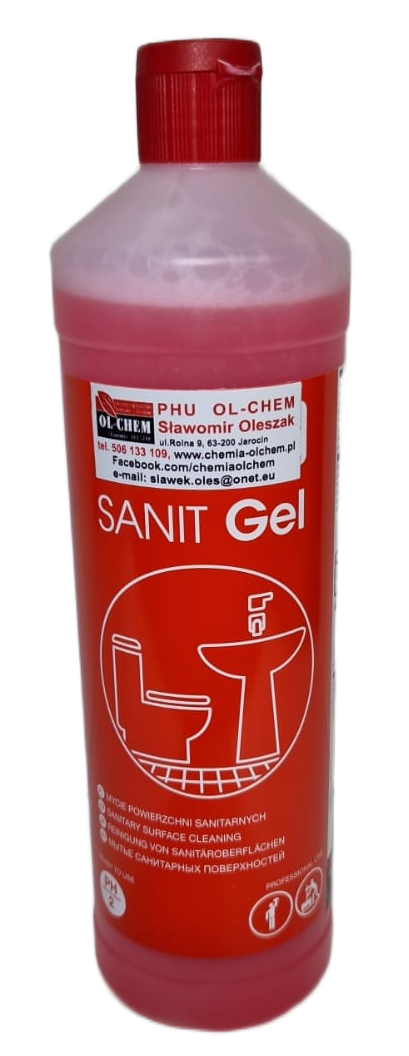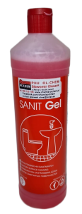 Produkt w żelu do codziennego mycia powierzchni i urządzeń w pomieszczeniach sanitarnych typu: muszle klozetowe, pisuary i bidety, wanny, umywalki, brodziki, kabiny prysznicowe, ceramiczne podłogi i ściany.